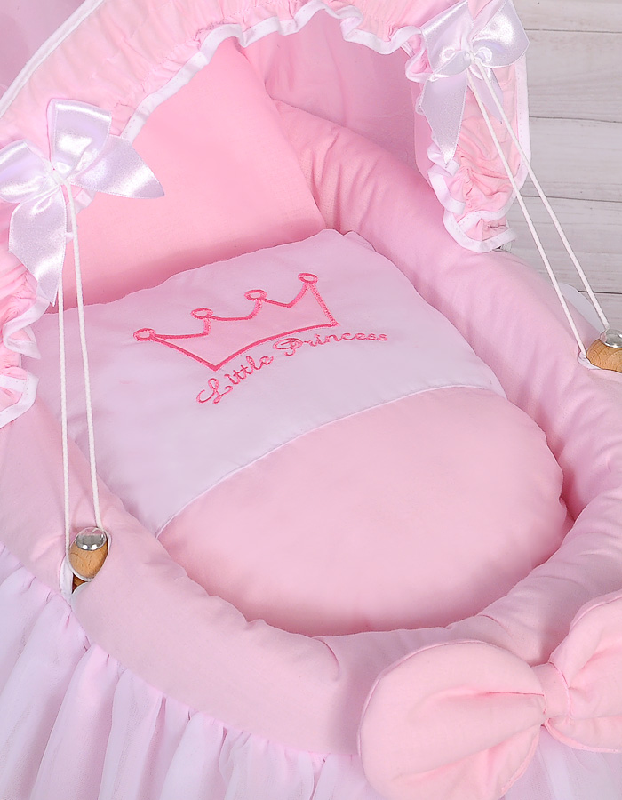 MY SWEET BABY wicker crib for dolls are the highest quality and wonderful products for children. Made of natural wicker (willow) and wood. Every detail is beautifully nuanced as a result of careful hand work. Long lining to the ground, extra frills and above all, a big crown and the inscription "Little Princess" on the quilt are the main advantages of these beautiful doll cribs. Perfect gift for a little girl.