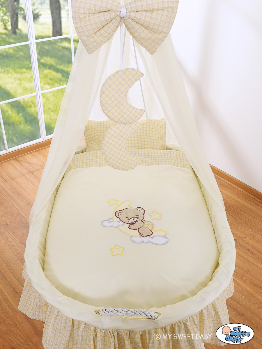 · The biggest bassinet on the market with total sizing of L 95 cm, W 65 cm, H 140 cm. The biggest lying space: 80x45 cm allows to use the crib longer. Suitable from birth to 9 months approx. · Manually caned basket made of healthy, natural wicker. · The chassis made of real wood, very stable! Much higher than in other producers – 50cm high. It brings comfort as bending down for the baby is not necessary. · Small plastic wheels with brakes that rotate very easily. · All materials, from the wood for the chassis, through the wicker for the basket, to materials and the trim stuffing are precisely inspected and finished in detail. · The handle at the front of the bassinet allows to change its position easily. · A cotton pillow (35x37cm) and cover (78x78cm) are filled with special anti-allergic stuffing, very light and warm. The bed – clothing is 100% cotton. All elements may be mechanically washed. · The whole is easy - to- assemble, it’s enough to follow the assembly instruction. Just two moves and it’s ready! · Anti-allergic mattress, with a cover that may be taken off. Cream Night Good Crib- Drape Wicker