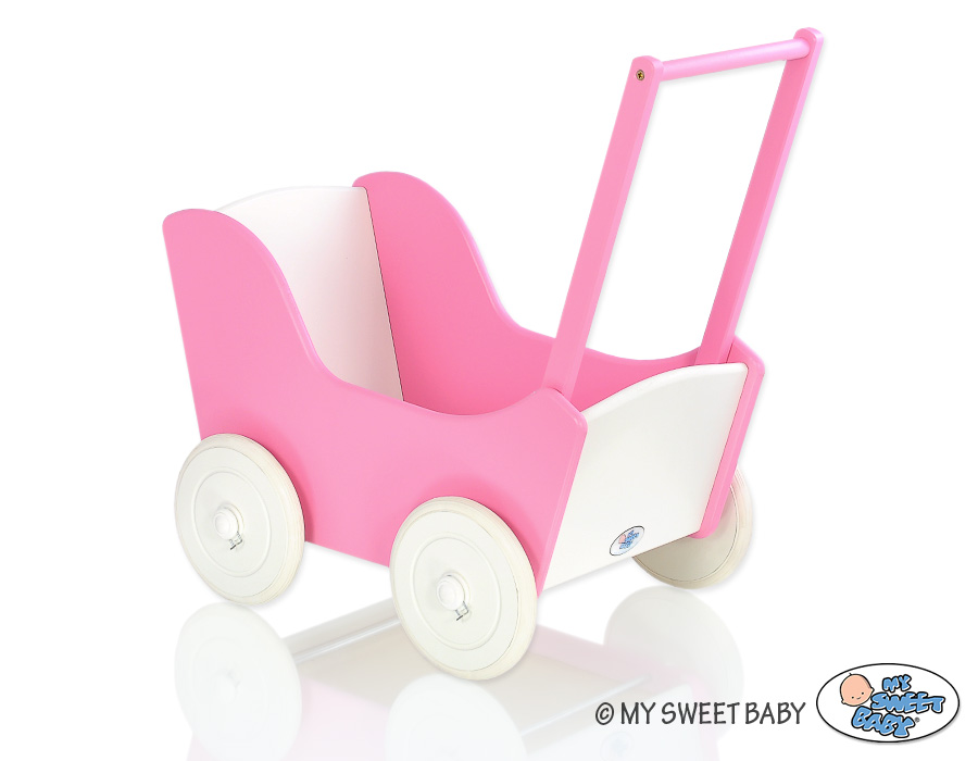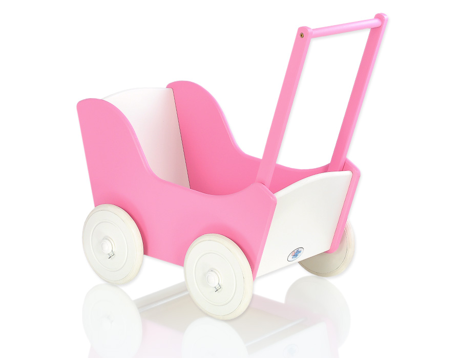Great gift for a little girl. The doll pram is the top product for children. Made of safe materials. Painted with ecological paints. Wheels are mounted on metal axles, with a click-clack mechanism, which makes them easier to turn and do not fall.