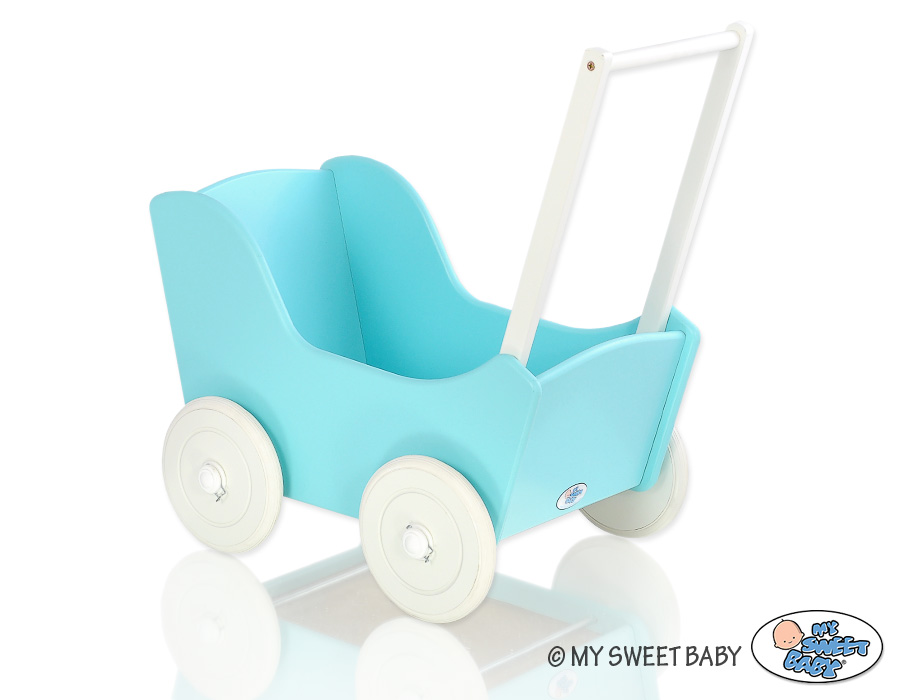 Baby Shop » Baby Toys » Doll prams » Doll prams » Turquoise » Wooden Doll Carriage Turquoise with White