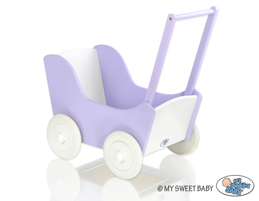 Great gift for a little girl. The doll pram is the top product for children. Made of safe materials. Painted with ecological paints. Wheels are mounted on metal axles, with a click-clack mechanism, which makes them easier to turn and do not fall.