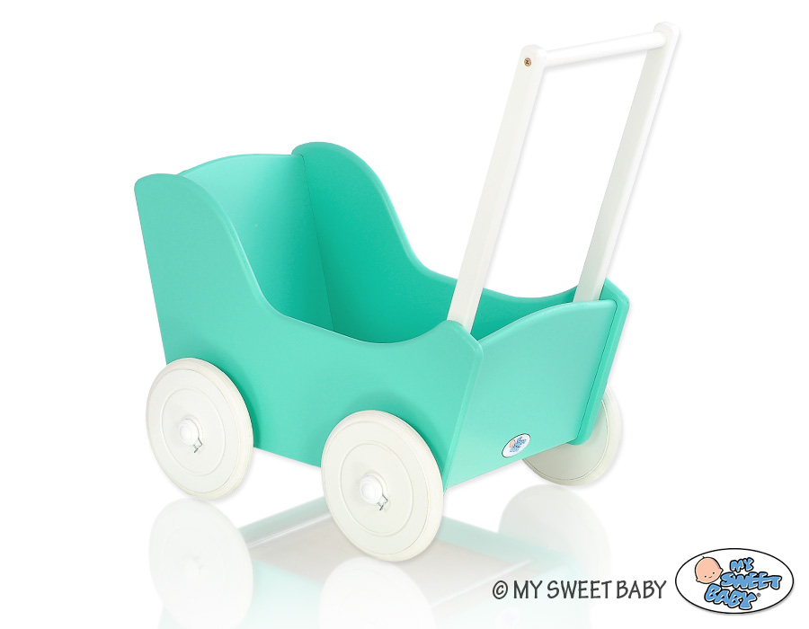 Great gift for a little girl. The doll pram is the top product for children. Made of safe materials. Painted with ecological paints. Wheels are mounted on metal axles, with a click-clack mechanism, which makes them easier to turn and do not fall.