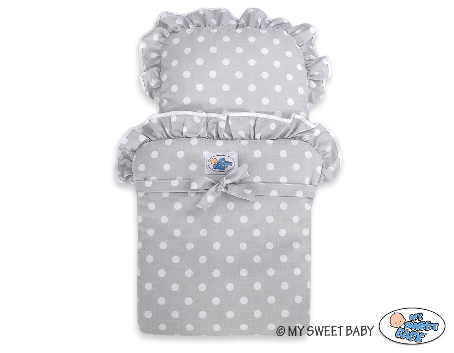 Gray On Dots White GrayBedding Stroller Pram Doll Wooden