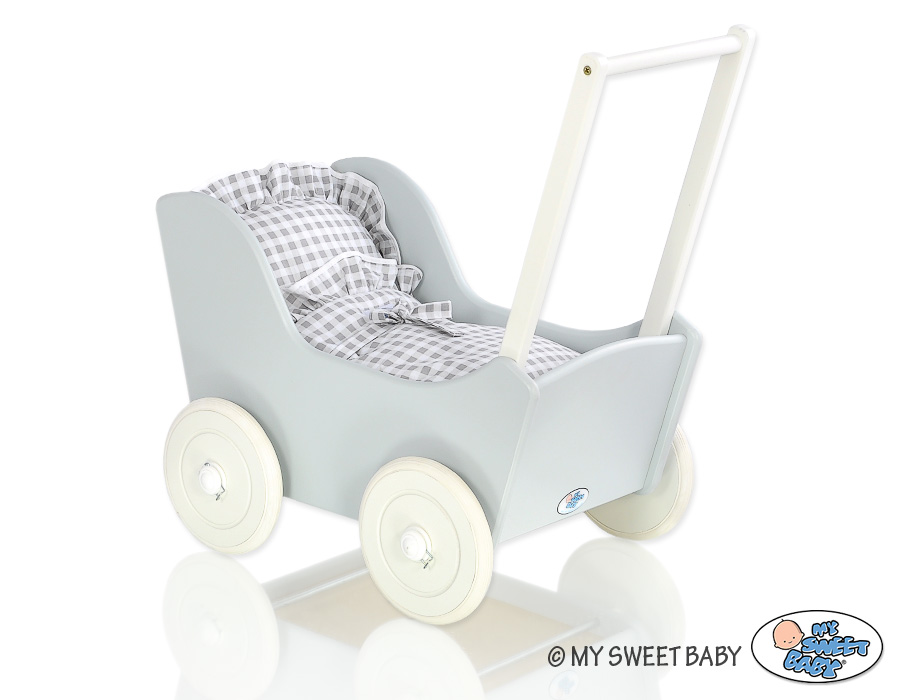 Baby Shop » Baby Toys » Doll prams » Doll prams » Gray » Wooden Doll Pram Stroller GrayWhite Gray Checkered