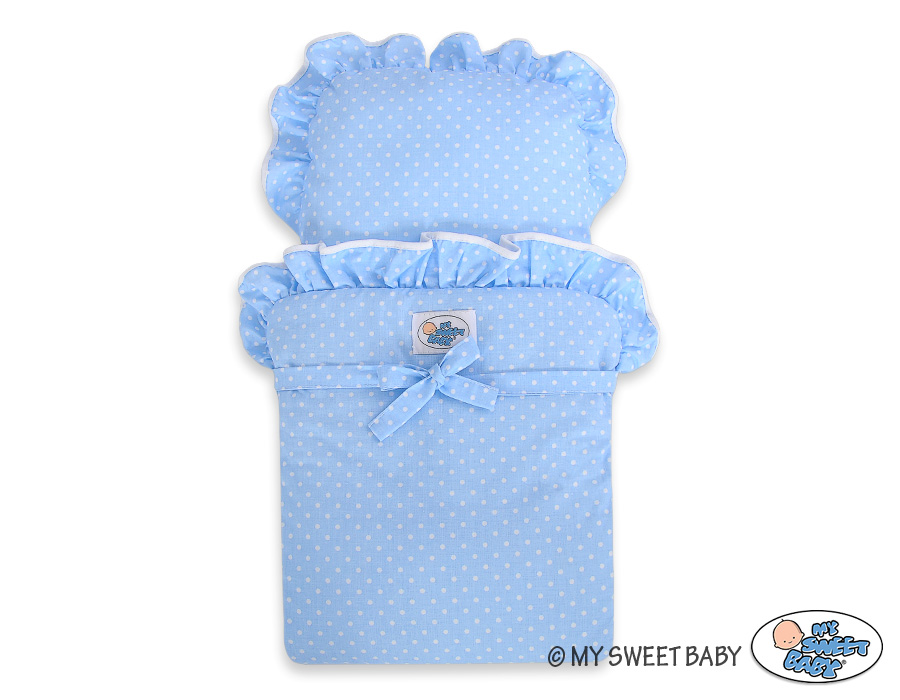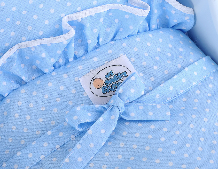 Blue On Dots White Bedding White-Blue Pram Doll Wooden