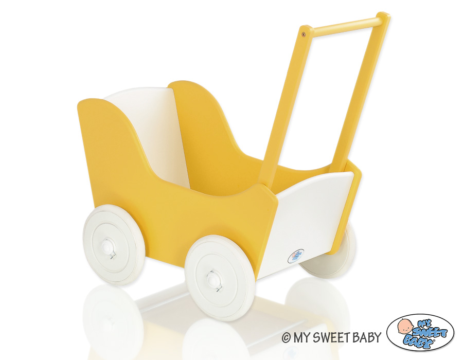 Baby Shop » Baby Toys » Doll prams » Doll prams » Yellow » Wooden Doll pram White Yellow