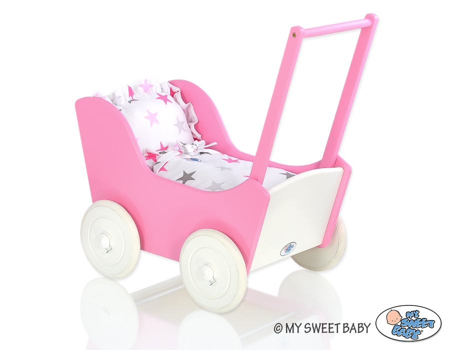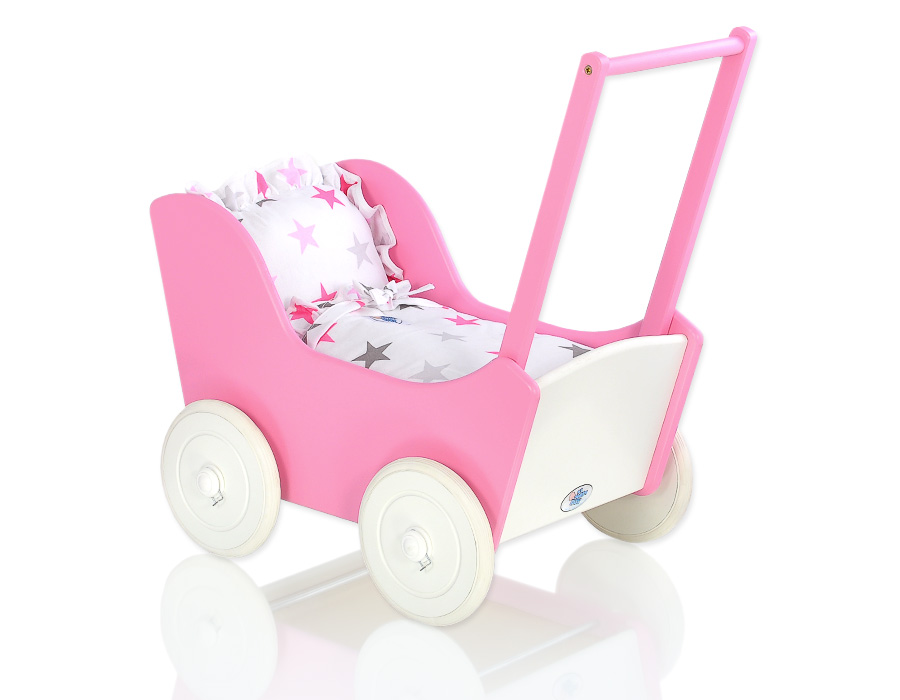 Baby Shop » Baby Toys » Doll prams » Doll prams » Dark pink » Wooden Doll Stroller Fuchsia-White -764