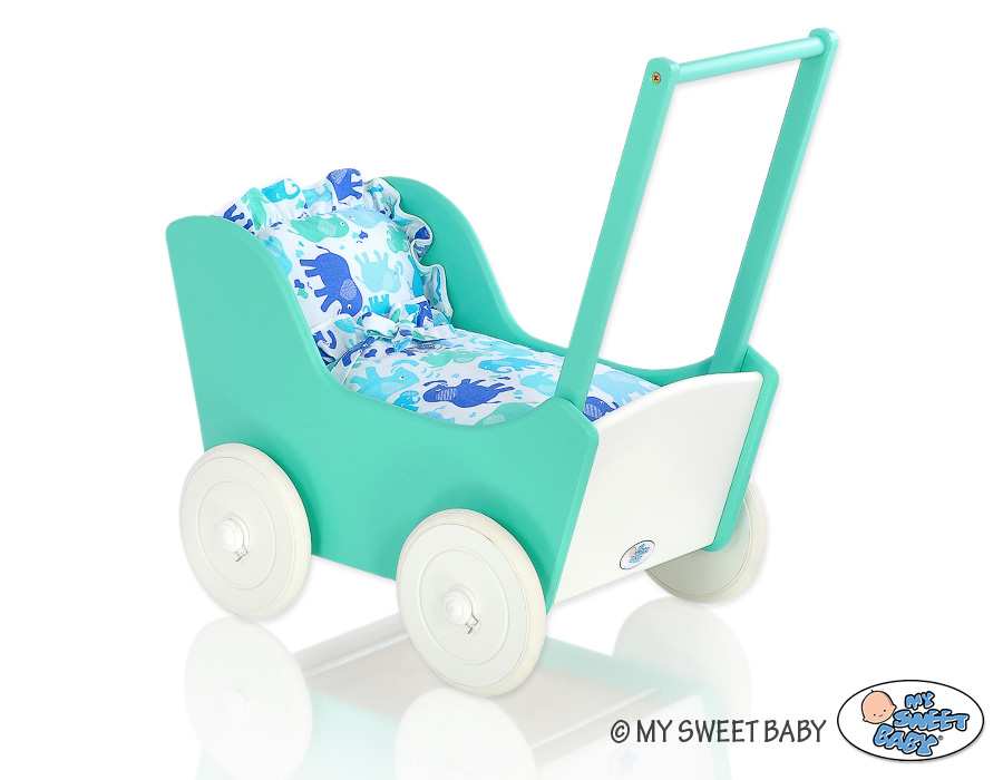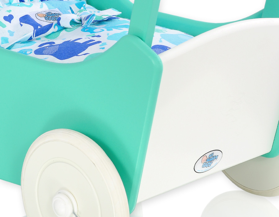 Baby Shop » Baby Toys » Doll prams » Doll prams » Mint » Wooden pram for Dolls with Bedding Set Mint White -734