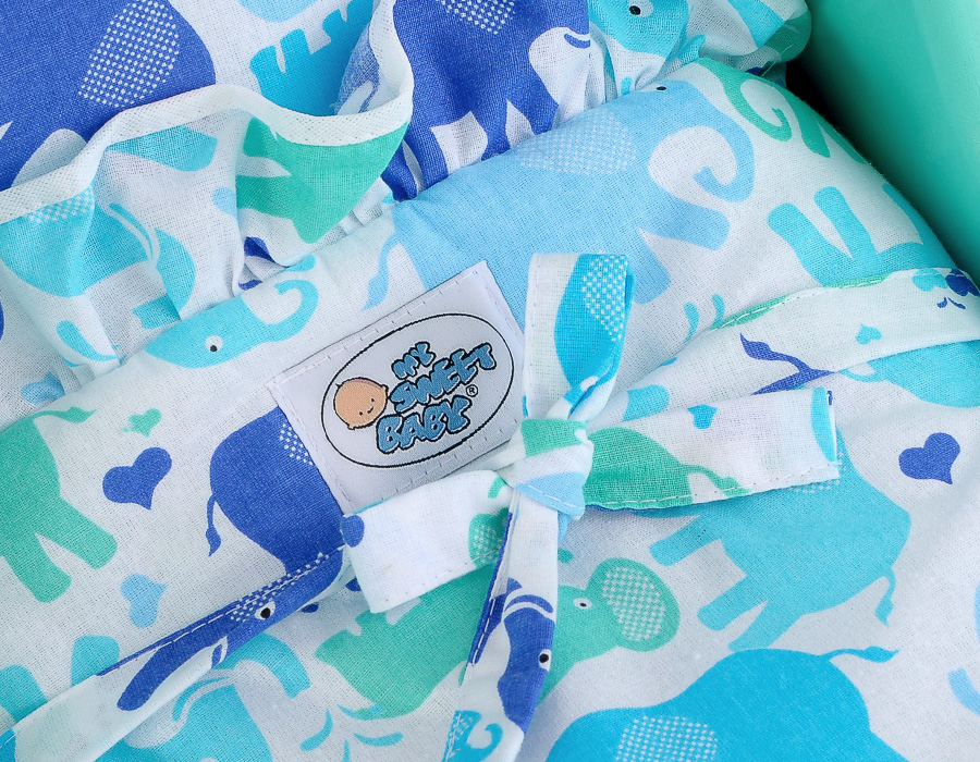 -734 White Mint Bedding With Dolls For Pram Wooden